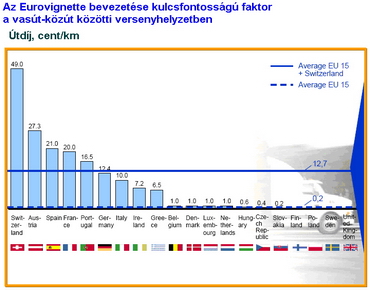 Az úthasználati díj széles körű bevezetése, és annak kötelezővé tétele (Eurovignette törekvések), jó mérési aránnyal párosulva elősegítheti a jelenleg igen komoly méretű közúti externális költségek internalizálását. Amint ezek a költségek megjelennek a közúti fuvarozók költségvetésében, akkor a helyes közlekedéspolitikai irányelvek és normák megteremtik annak esélyét, hogy jelentős mennyiségű áruforgalom terelődjön a vasúti szektor felé. Jó példa ennek alátámasztására a transzalpin forgalom elmúlt évtizedekben lezajlott változása Svájc, Ausztria és Franciaország viszonylatában. Svájcban akkortájt népszavazás döntött arról, hogy a környezeti ártalmakat mérsékelni kell, s ennek teljesítése érdekében Svájc hozzáfogott a Lötschberg és Gothard vasúti talpalagutak építéséhez, illetve rendkívül komoly intézkedéseket hozott a közúti fuvarozókkal szemben, s Európa legdrágább közúthasználati díját vezette be: