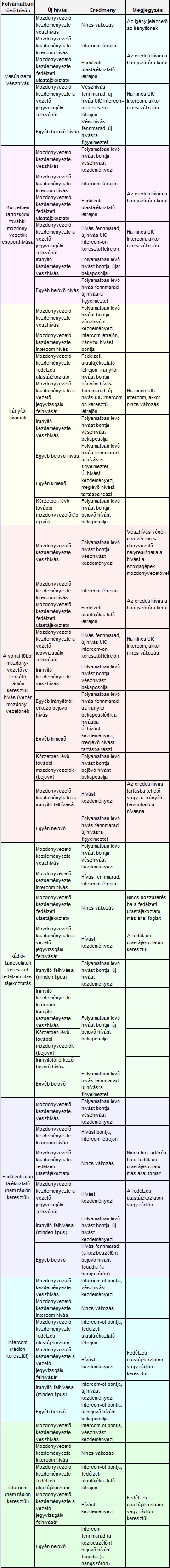 1. Mozdonyvezetői hívással kapcsolatos funkciók