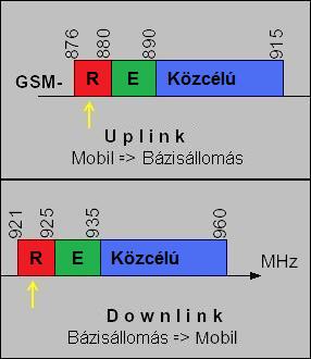 Maga a GSM-R (GSM) rendszer cellás, duplex rádiórendszer, amely FDMA/TDMA (frekvencia-időosztásos többszörös hozzáférés) csatornaosztást alkalmaz. A GSM-R hálózatban a 876-880 MHz-es frekvenciatartományban történik az uplink, azaz a mobil állomások adása és a bázisállomások vétele; és a 921-925 MHz-es tartományban a downlink, azaz a bázisállomások adása és a mobil állomások vétele. Ahogy azt az alábbi ábra is mutatja, ez a 2x4 MHz-es sáv szomszédos a GSM kiterjesztett 880-915, 925-960 MHz-es tartományaival.