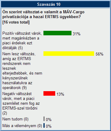 Szavazás 10 - Ön szerint változtat-e valamit a MÁV-Cargo privatizációja a hazai ERTMS ügyekben?