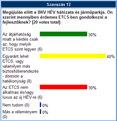 Szavazás 12 - Megújulás előtt a BKV HÉV hálózata és járműparkja. Ön szerint mennyiben érdemes ETCS-ben gondolkozni a fejlesztőknek?