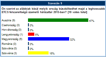 Szavazás 9 - Ön szerint az alábbiak közül melyik ország büszkélkedhet majd a leghosszabb ETCS felszereltségű üzemelő hálózattal 2013-ban?