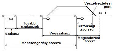 Biztonsági távolság: A menetengedély vége és az első lehetséges veszélyeztetési pont közötti távolság.